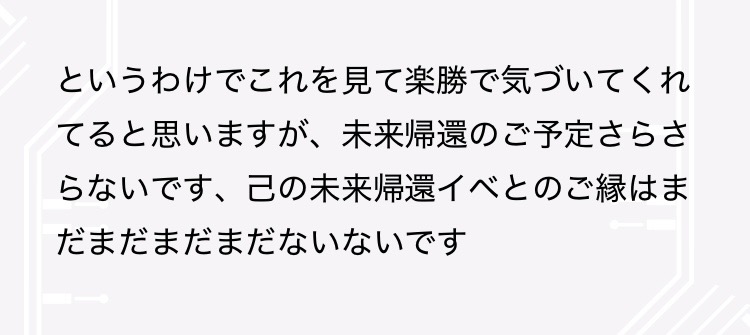 まあでもね、直近でさきなさん未来帰還発表あったばかりだし、ま、まさかまさかまさかね…?ってなる気持ちもわかりますよ