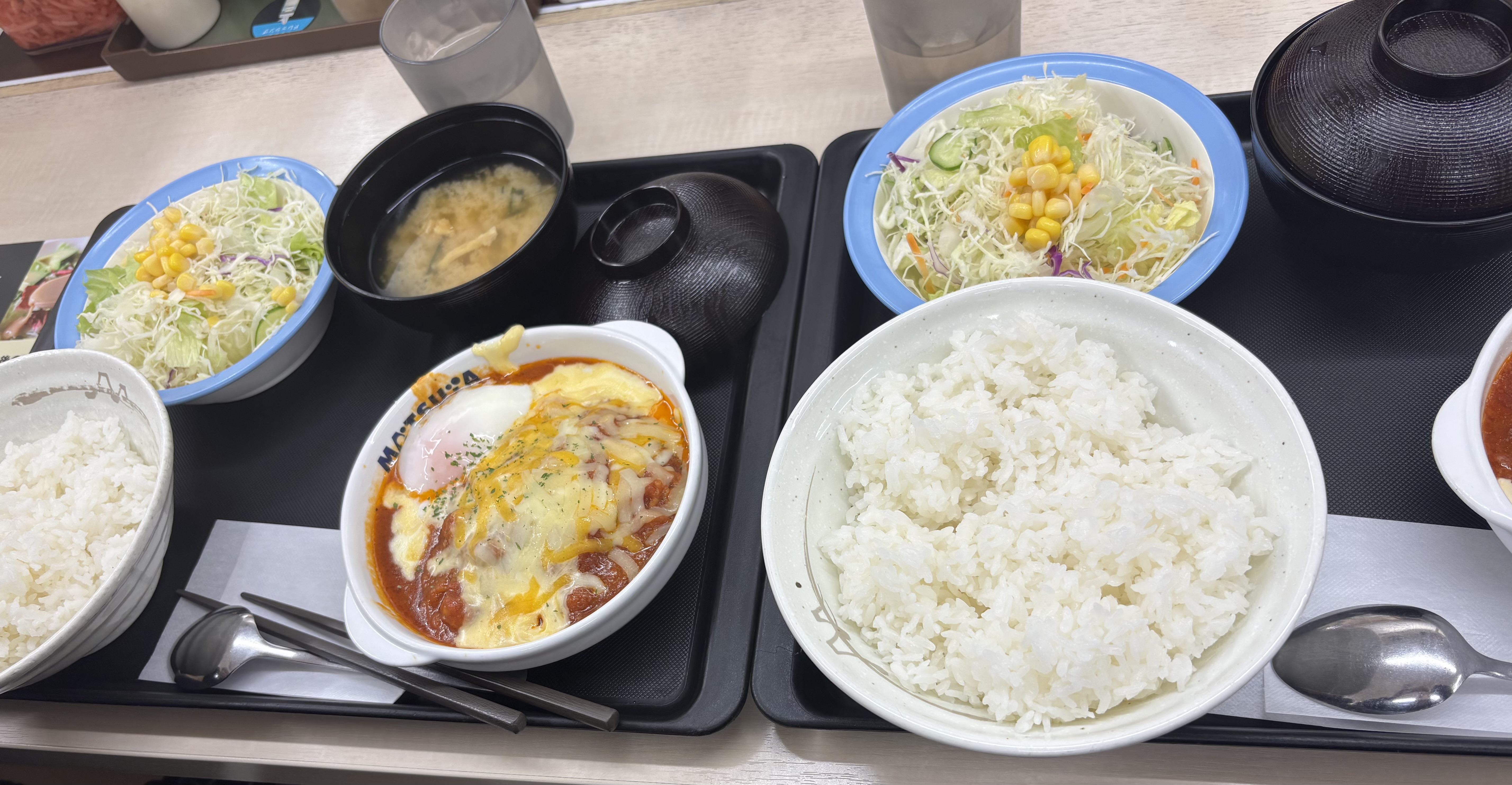 とりあえず腹ごしらえは必要なので、ド深夜に松屋でチーズうまトマハンバーグ定食を食べたよ( .ˬ.)"