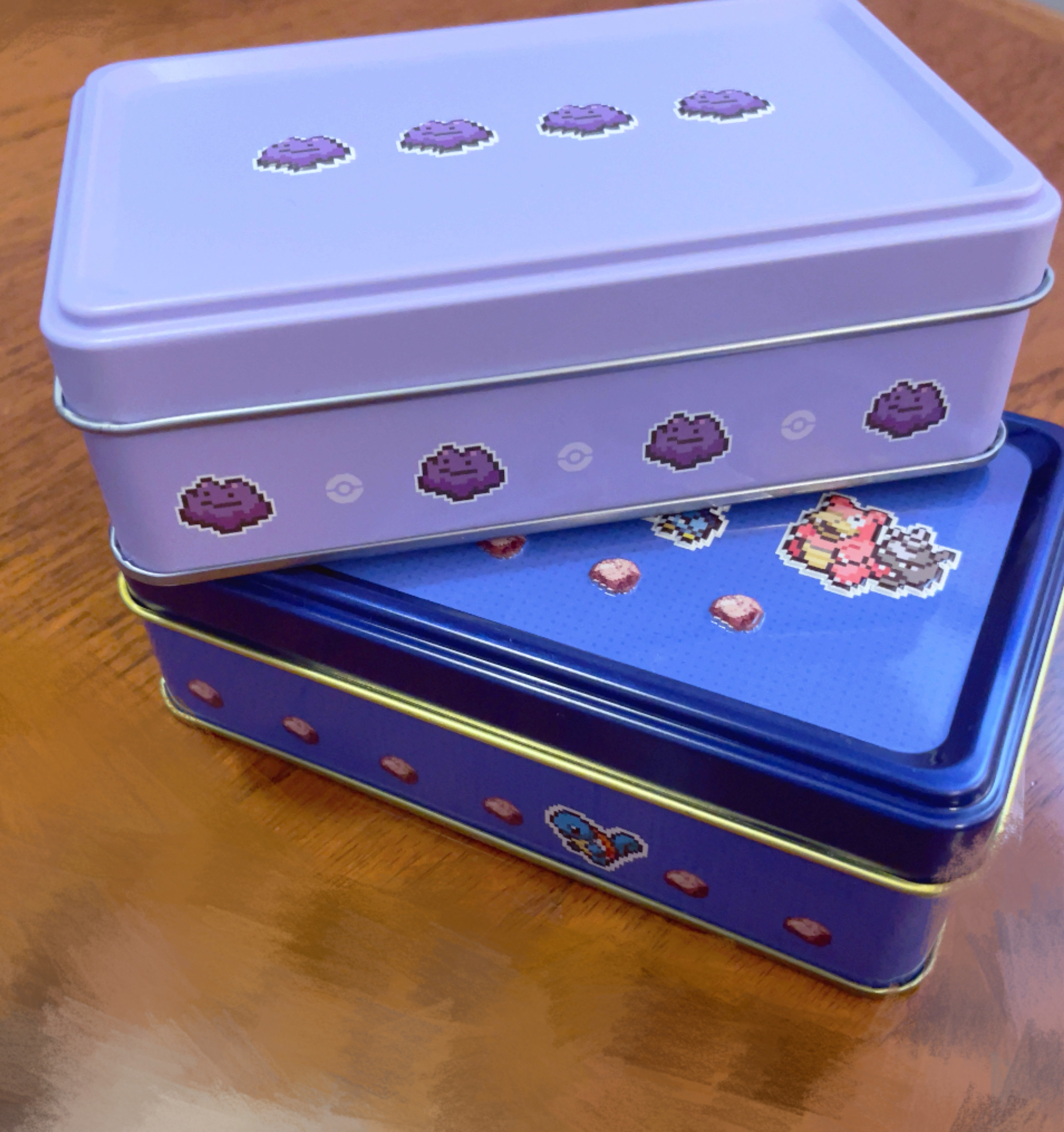 これはバレンタインの時期に出たポケモンのチョコレートの缶です!メタモンのものは秋葉原駅構内でゲットしましたよ!水タイプのものは去年頂きました!メタモンは憎めない表情をしていてめちゃかわいいです!なんといってもこの紫がいいですよね!求めてる紫でサイコーです!この缶は貼らないミニホッカイロがピッタリ入ります!!!!今年気が付きました!!!この缶はお値段もそんなに高くないのでオススメです!ホッカイロ入れてくださいーー