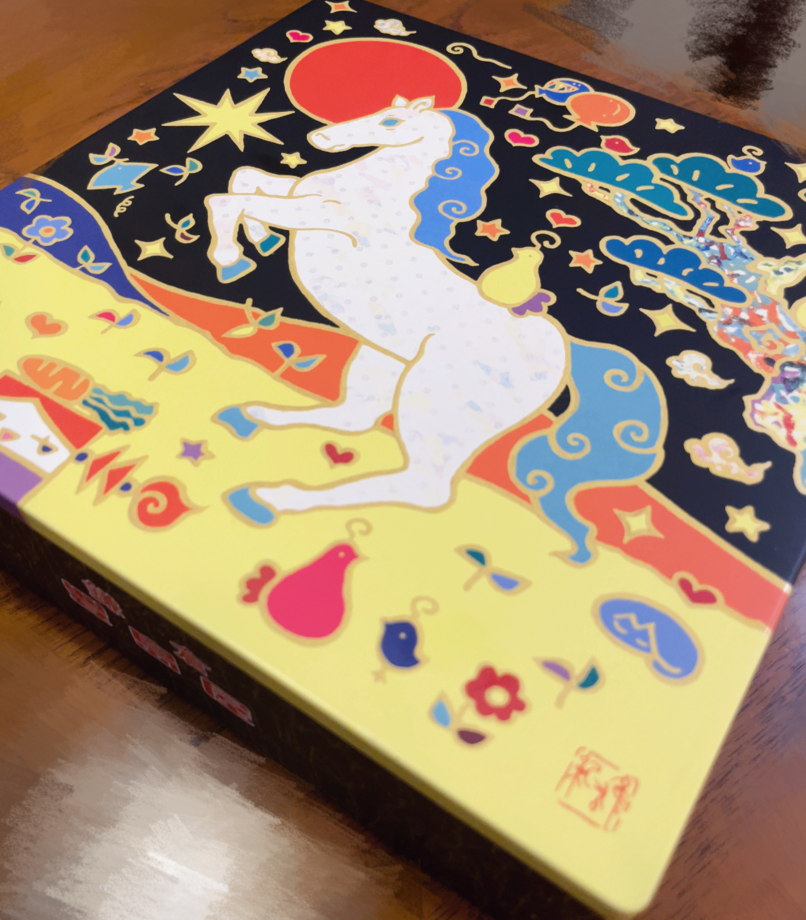 これはたしか鳩サブレーと画家さんがコラボしていた時のものだと思います。おばあちゃんロイドに頂きました!す、すごくないですか!!!なんて煌びやかなのでしょうか…?!いつ見ても幸せな気持ちになれます💞貰った時は興奮して震えましたよ…!カラフルだけど上品な所や洗礼された線がほんとーに素晴らしい👏👏結構大きいのでなんでも入ります!私は中に缶を入れてます!