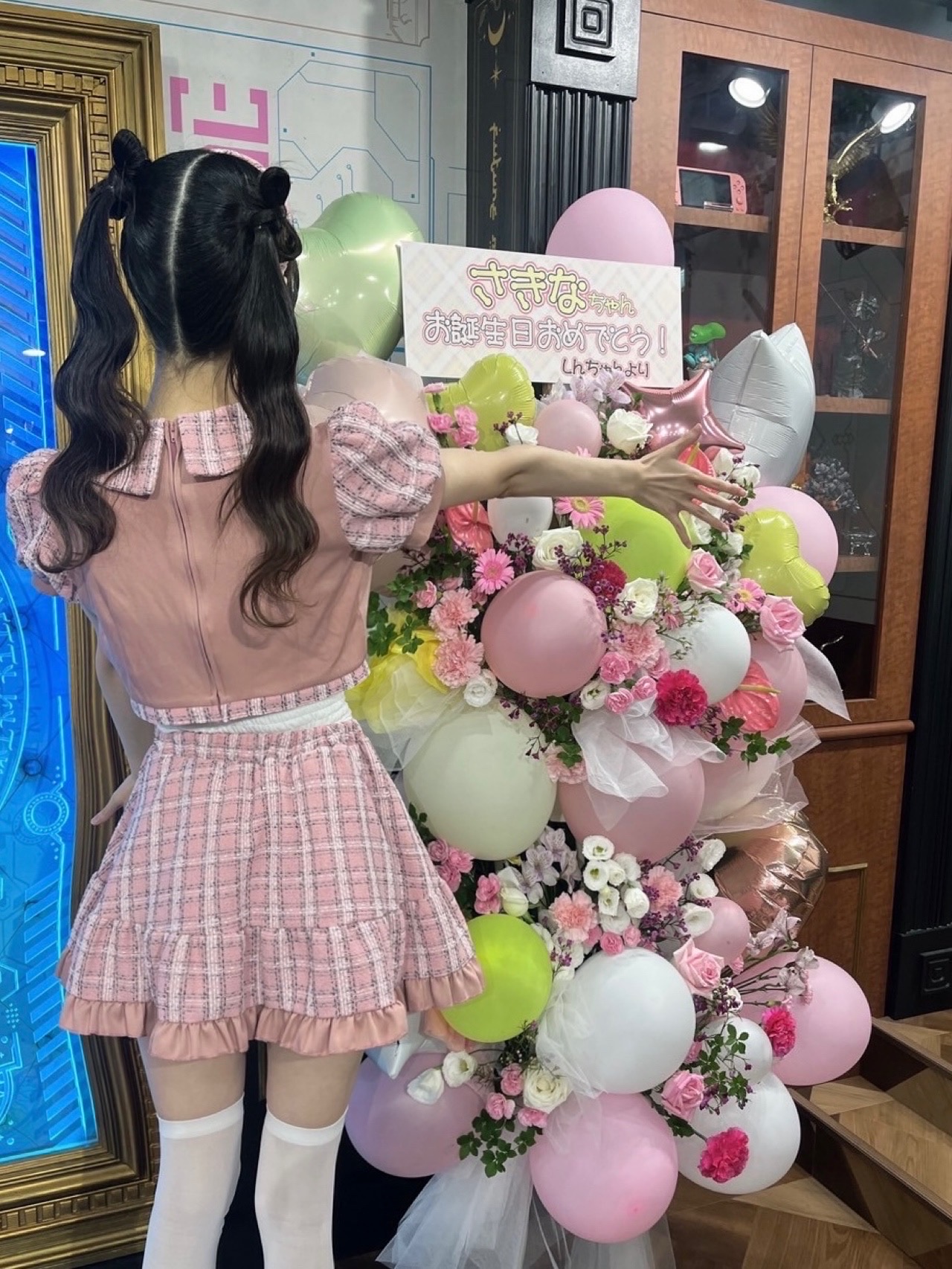 素敵なお花協力してくれて本当にありがとう!!💐💖お花に入れる文字、ご主人様の案も候補の中にあるんだよーって笑顔で話してくれたのもとっても嬉しかった🎶当日もお仕事帰り駆け込んでくれて会えてめちゃくちゃ嬉しかったよー😭😭♡ありがとう!!