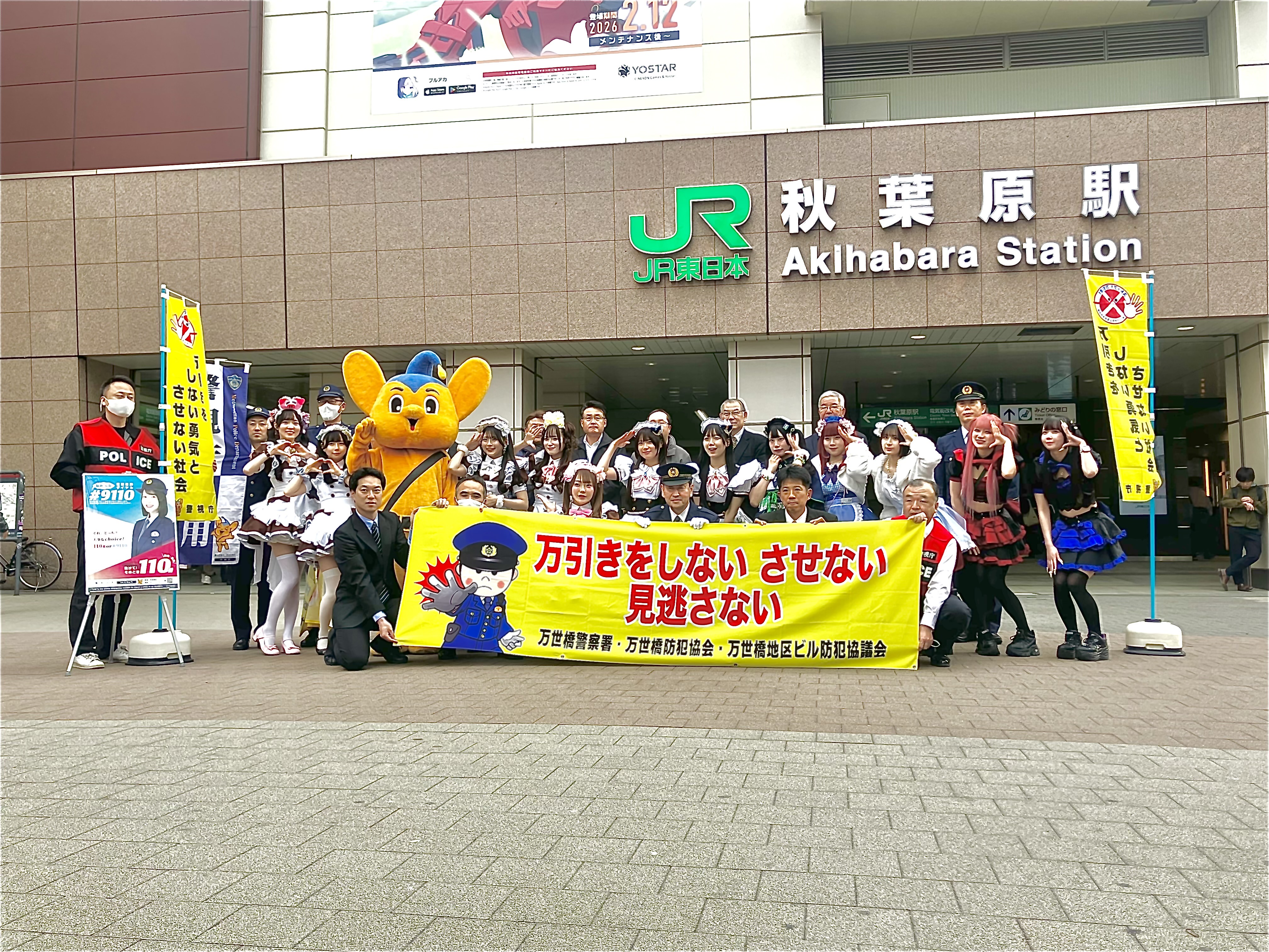 秋葉原駅前で行われた『万引き防止キャンペーン』に、メイドメイド秋葉原駅前店のつむぎが参加しました。