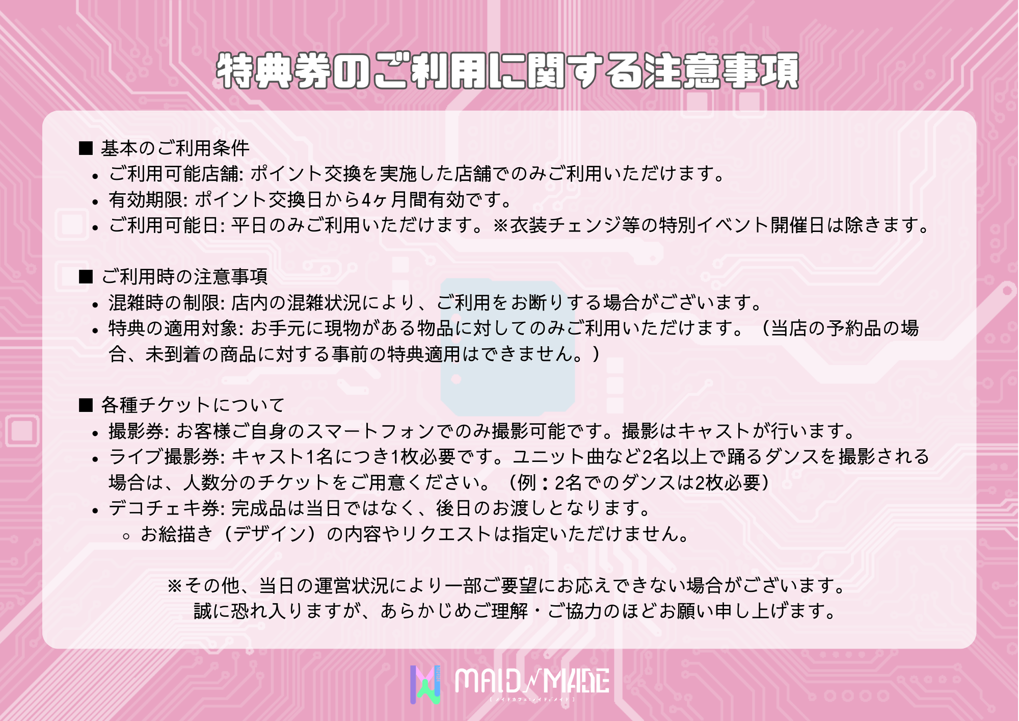 ポイントと特典券を交換を希望されるご主人様お嬢様は、