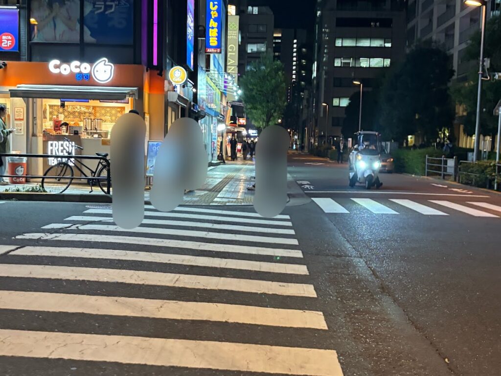 ⑤ドン・キホーテ秋葉原店の前も前進し、横断歩道を渡ります。