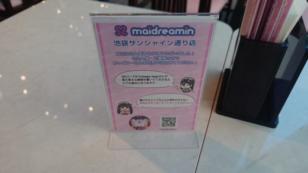 池袋のめいどりーみん 池袋店での時間は、これまでの訪問とは少し違う印象として心に残りました。いつもはイベントやパフォーマンスが中心で、会話はどうしても合間に短く交わす程度になりがちです。もちろんそれも楽しいのですが、この日はゆったりとした流れの中で、一人ひとりがきちんと向き合ってくれている感覚がありました。