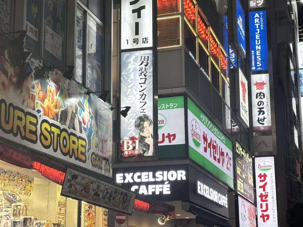 ⑥サイゼリヤの手前のビルにあるB1階がイケメンパラドックス秋葉原です