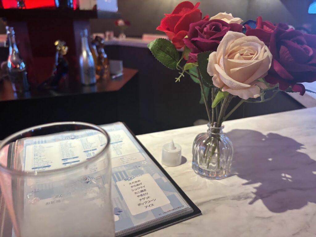 キャストさんは彼氏くんといい、攻略対象としており、推し活をしながら自分の彼氏を見つけよう!といったスタンスです。キャストドリンクも店内でいたるところに飾られているバラを彼氏くんに手渡すと注文ができます。