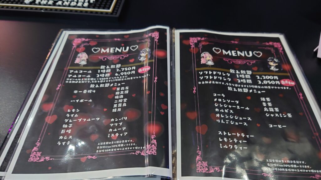 訪問するとスタッフが明るく迎えてくれ、お酒の注文やシステム説明から始まります。初対面でもリラックスした会話がしやすく、「おかえりなさい」のような挨拶より、親しみある接客スタイルで楽しめるのが特徴です。退店するときも、エレベーターまで「いってらっしゃいませ」と見送りされます。