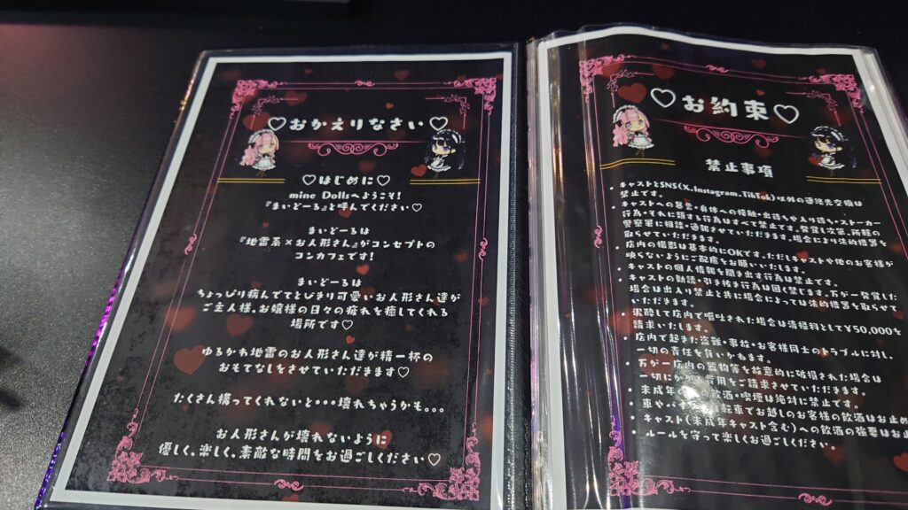 店名は「mineDolls(マイドール)」で、コンカフェ(コンセプトカフェ)としての個性を強く打ち出しており、夜のミナミ観光の立ち寄りスポットとしても人気です。