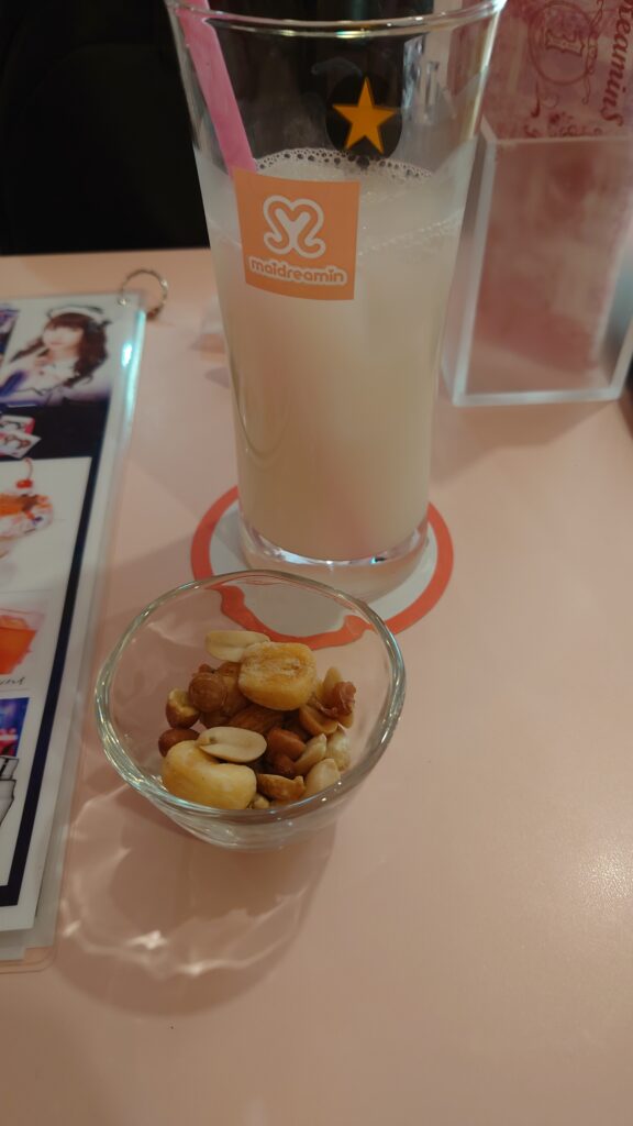 入店すると おかえりなさいませ、ご主人様と明るく迎えられます。