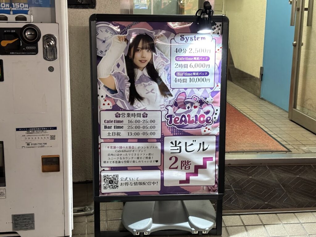 TeALICeは、40分2,500円で楽しめるコンカフェです。初回限定や通常よりもお得に長くいられるパックプランもあるので、利用したい時間に合わせて選ぶのをおすすめします。