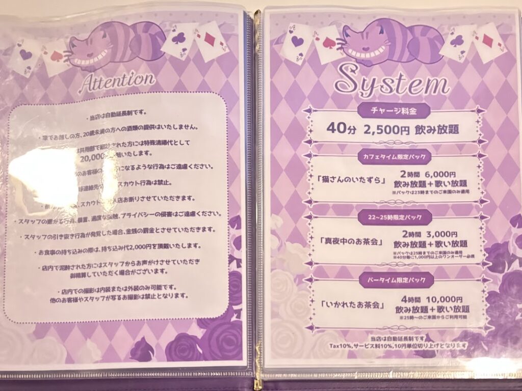 筆者は女性限定の割引と、キャストドリンクMを頼み、3,000円でした。通常の1タイムの料金で利用ができ、大変満足な内容でした。