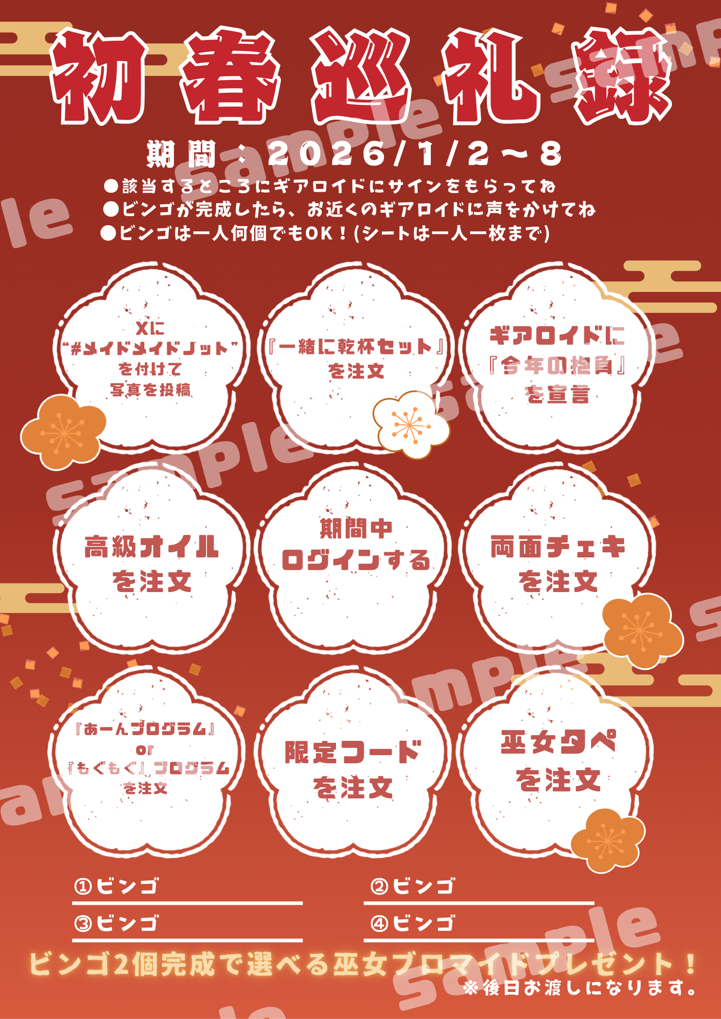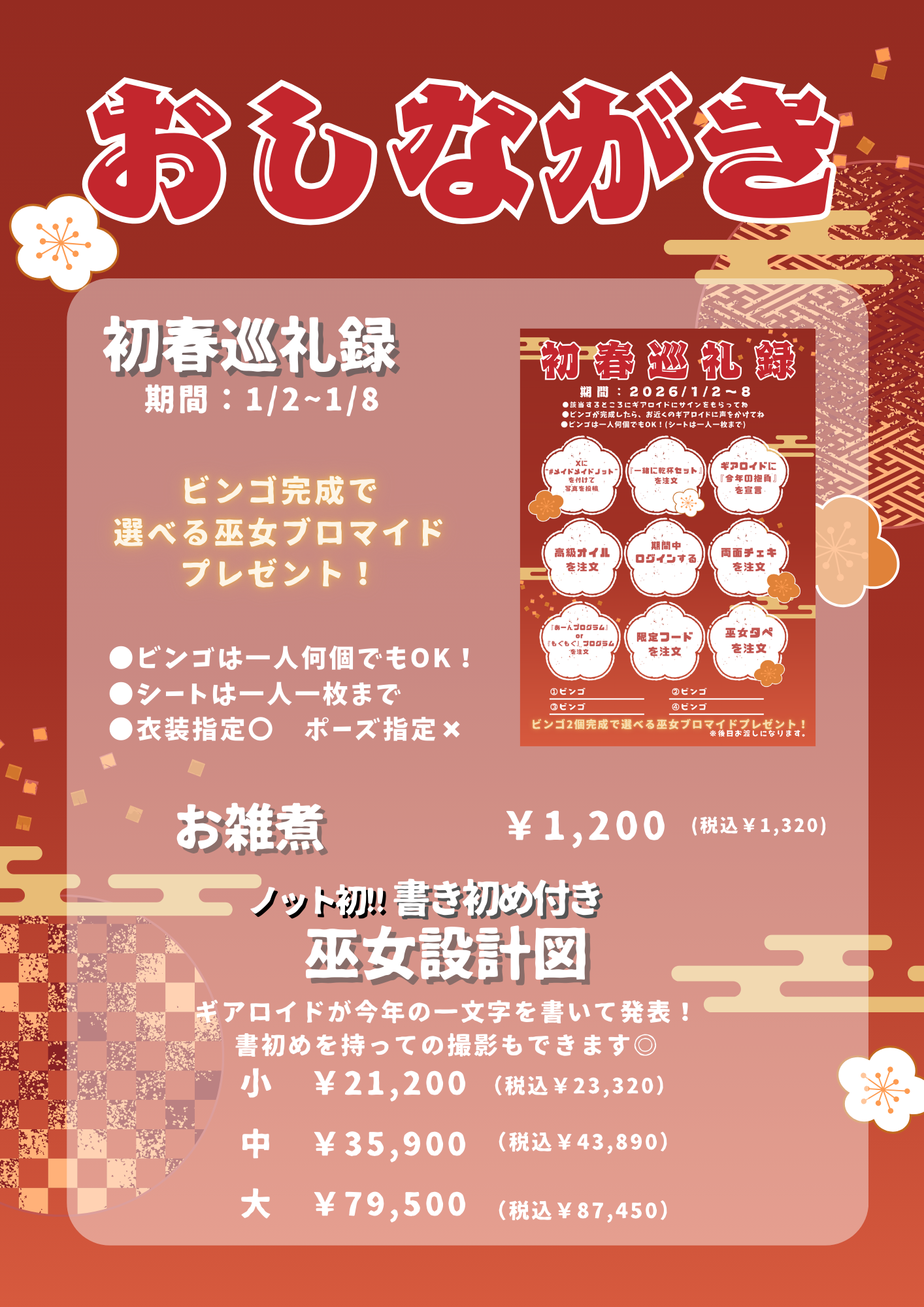 1/2~1/4は一部メイドちゃんが衣装チェンジでお給仕予定!