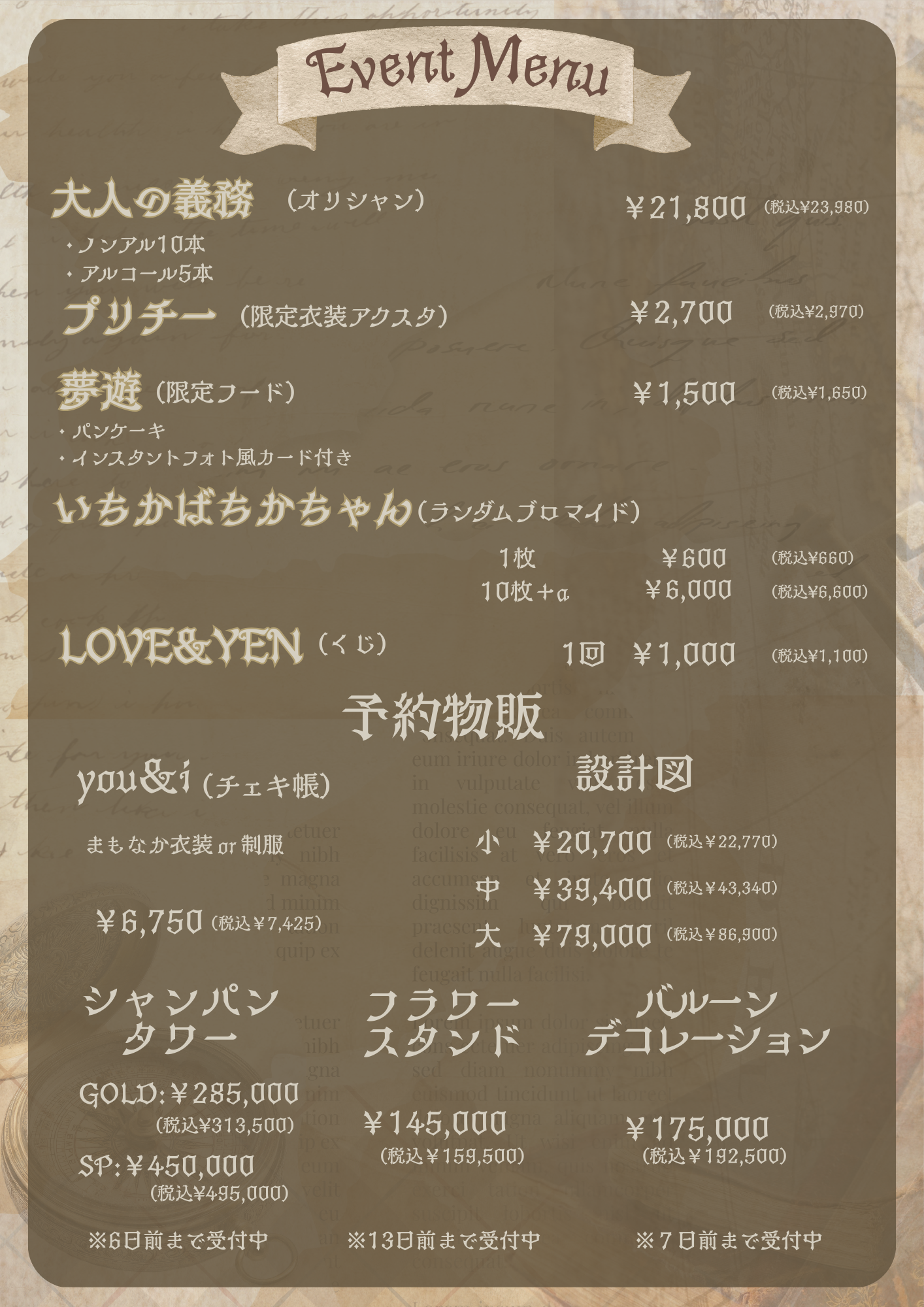 ♡両面チェキなど、状況に応じましてオーダーを制限させていただく可能性もございます。ご了承ください。